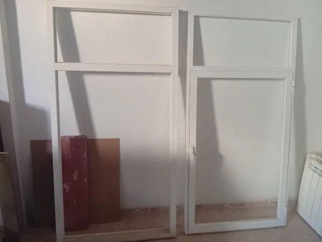 Se venden ventana de aluminio fija y puerta. - 2 de fijas y 1 con puerta. - Medida: 184'5* 93'5 - Material: Aluminio. - Color: Blanco.