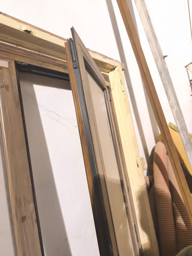 Detalles del productoVentana de aluminio con acabado que imita la madera. Dimensiones 177*115 centímetros. (El marco antiguo de madera se desatornilla y queda libre)