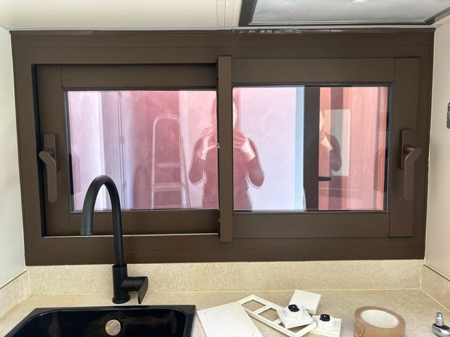 Detalles del productoVentana de aluminio en color marrón con doble acristalamiento Climalit.