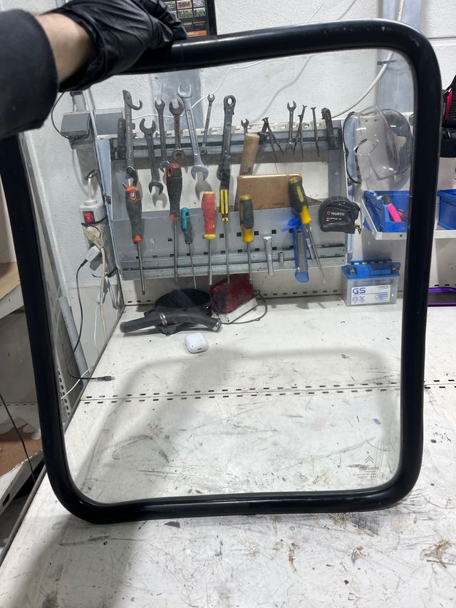 Ventana delantera para Citroën C15. Pieza de repuesto. - Marco negro. - Cristal transparente.