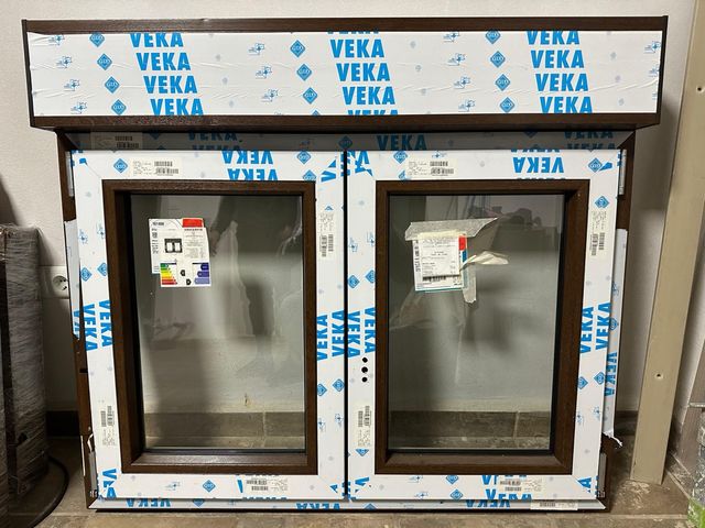 Ventana con persiana incluida nueva a estrenar con acabado en color nogal. MEDIDAS: 1.14 m de Ancho x 183 mm de alto. -Oscilobatiente. - Marco de PVC. - Doble acristalamiento