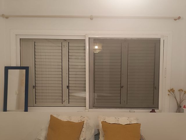 Ventana corredera ya desmontada d - Marco blanco. - Doble hoja. No incluye la contraventana de lamas dimensiones: 320 cm de ancho x 140 cm de alto