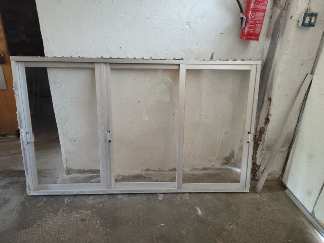 - Ventana de tres hojas corredizas. - Marco de aluminio color plata. - Cristales transparentes. - Medidas aproximadas: 204cm x 120cm (ancho x alto)