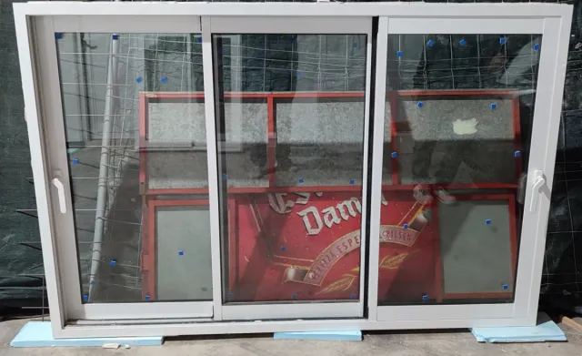 Detalles del productoVentana 3 hojas correderas de aluminio con Rotura Térmica, en color blanco, sin persiana. Ancho total = 2150 mm y Altura total = 1400mm, espesor marco = 120 mm.
