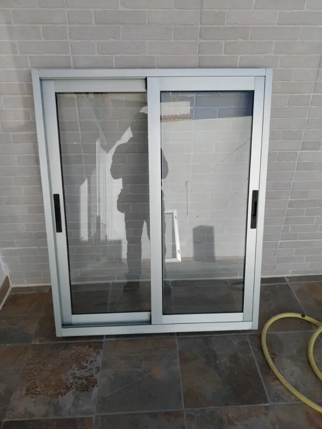 Se venden dos ventanas correderas de aluminio en color plata. - Marco de aluminio. - Cristal transparente. - Tiradores negros.