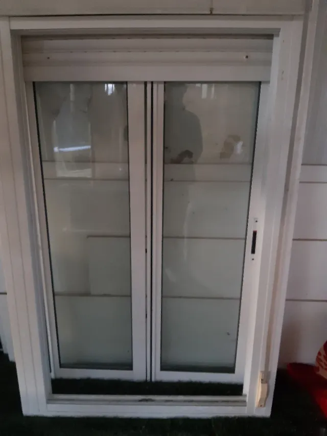 Ventana corredera de aluminio blanco, ideal para exteriores. - Marco de aluminio. - Doble cristal. - Sistema de apertura corredera.