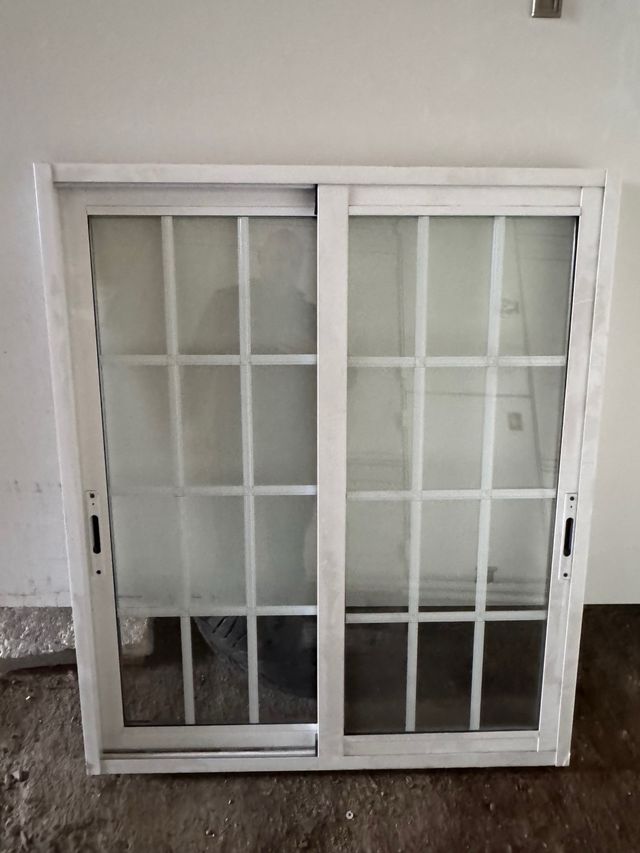 Detalles del productoVentana corredera de aluminio con doble acristalamiento Climalit y diseño de palillería interior.