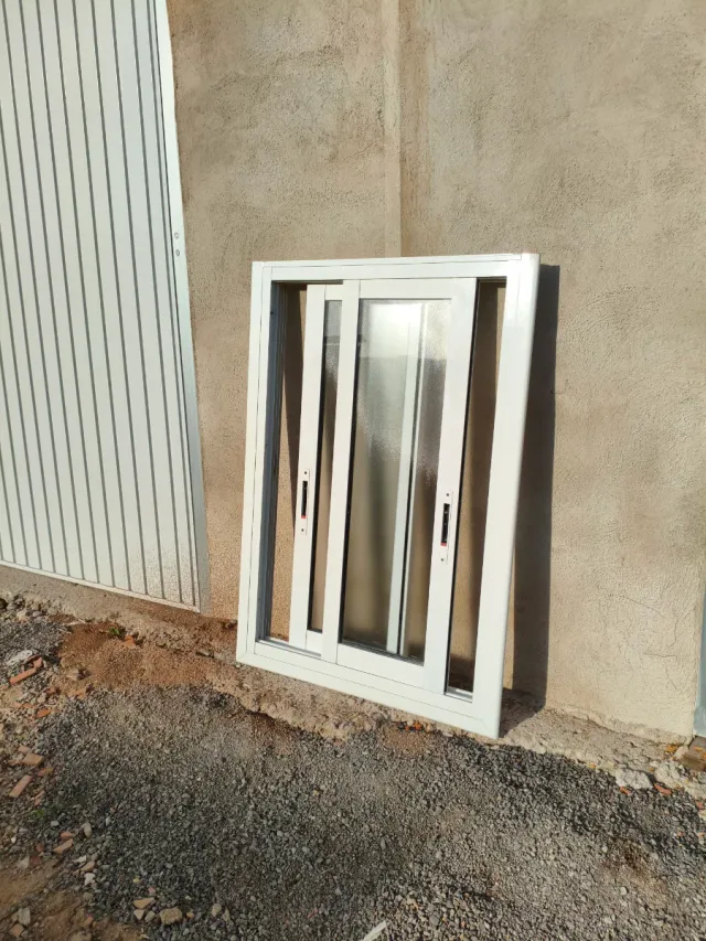 Detalles del productoVentana de aluminio, hojas correderas y cristal translúcido climalit/doble. La ventana se encuentra en buen estado tal y como se puede apreciar en las fotos.