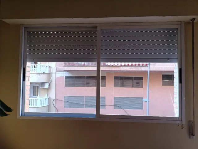 Ventana de aluminio blanco - Marco de aluminio. -Persiana independiente Ruedas deterioradas Medidas 2 m ancho x1.2 alto