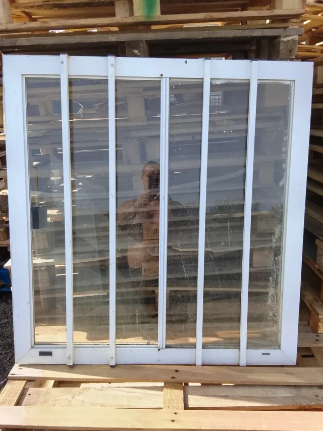 - Reja de seguridad y una hoja corredera.Hay 20 unidades a 30€ unidad, medidas 100 ancho por 97 alto más 5 cm embellecedor.