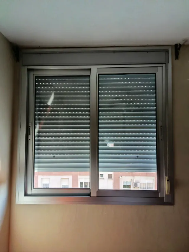 Detalles del productoVentana de aluminio con persiana enrollable.