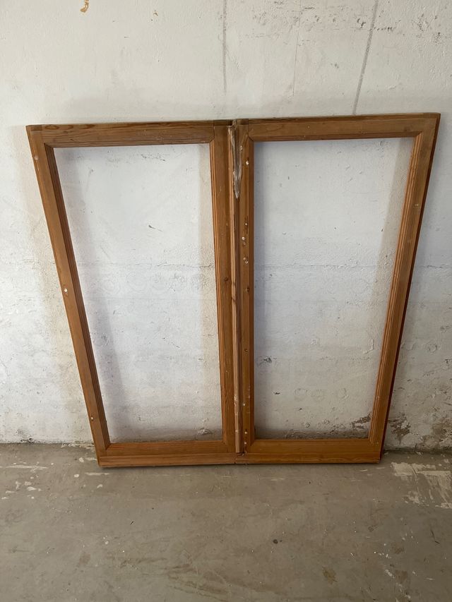 Detalles del productoMadera de pino. La hizo hará unos 30 años un carpintero de Tardelcuende pero jamás llegó a montarse, ha estado guardada desde entonces. Está sucia, habría que lijar, barnizar, poner cristales y hacerle un marco. Las medidas son con las dos hojas. Medidas del producto