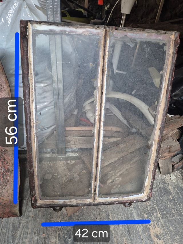 Ventana antigua de techo. Sus medidas son 56 cm de alto por 42 cm de ancho. - Claraboya de metal. - Ideal para proyectos de restauración o decoración rústica.