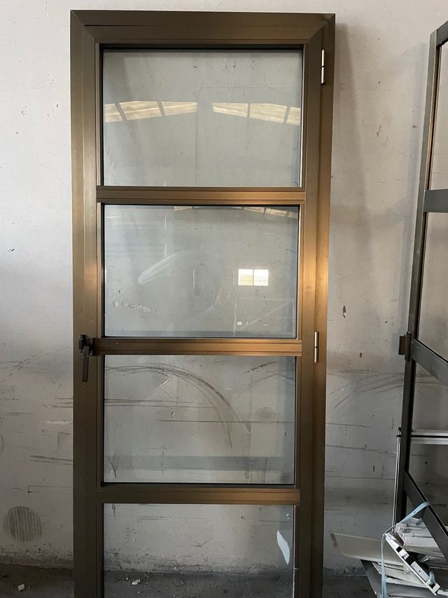 Ventana de aluminio en bronce con hojas cristal simple y puerta abatible con manivela presión 4-unidades 71x140 1-unidades 110x140 1-puerta 80x210 (75€)