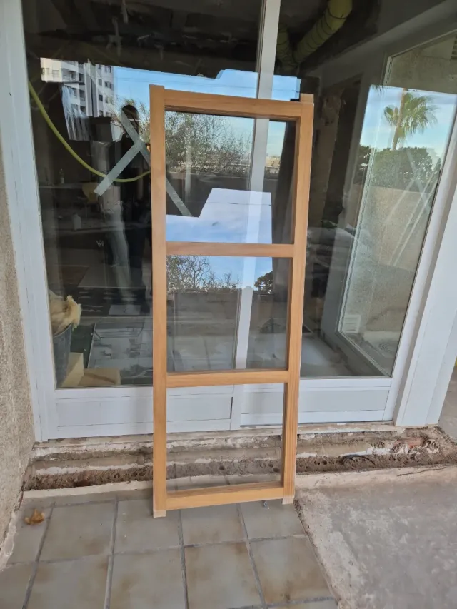 Marco de ventana de madera con medidas de 160x60 cm. - Material: Madera - Medidas: 160 cm de alto x 60 cm de ancho -3 cristales fijos de 50×46