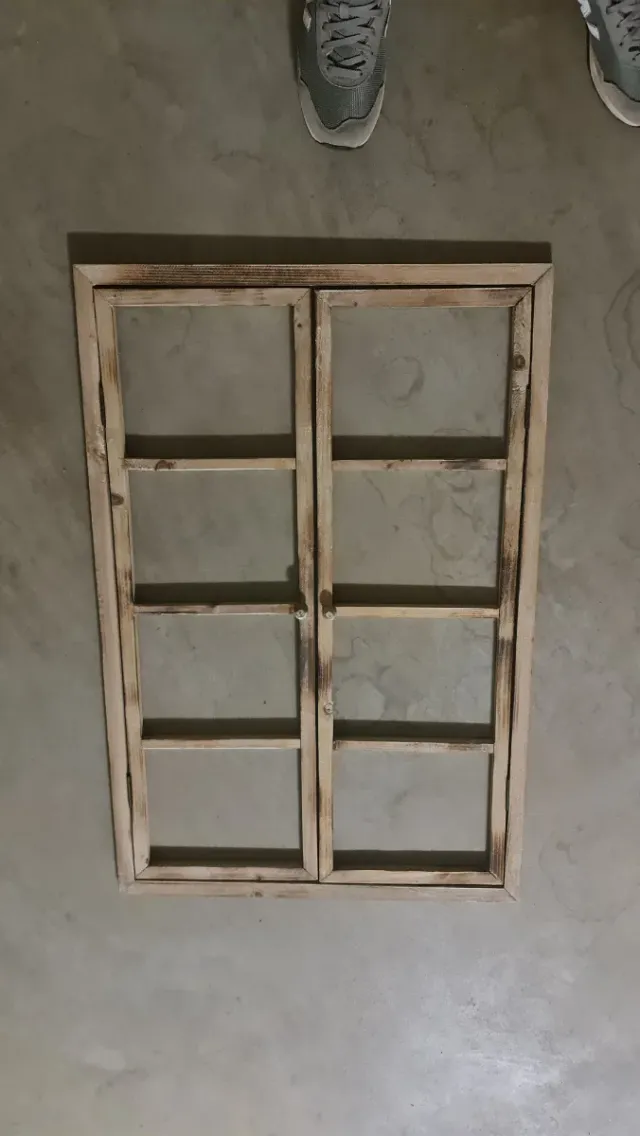 Marco de ventana de madera con un diseño rústico, ideal para añadir un toque decorativo a tu hogar. - Material: Madera. - Estilo: Rústico. - Diseño: Doble ventana
