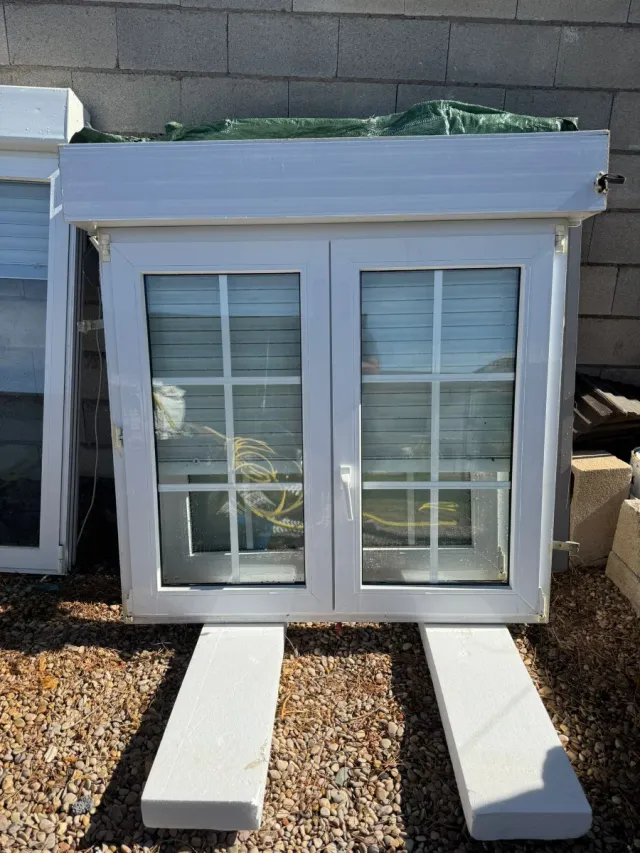 Detalles del productoVentana de PVC en color blanco con sistema oscilobatiente y doble acristalamiento Climalit.