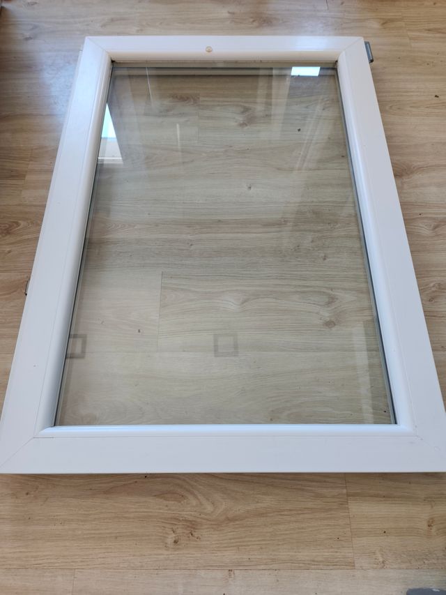 Detalles del productoVentana grande de PVC en color blanco con doble acristalamiento.