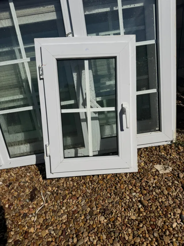 Detalles del productoVentana de PVC con doble cristal Climalit y diseño de barrotillo interior. Lista para instalar.