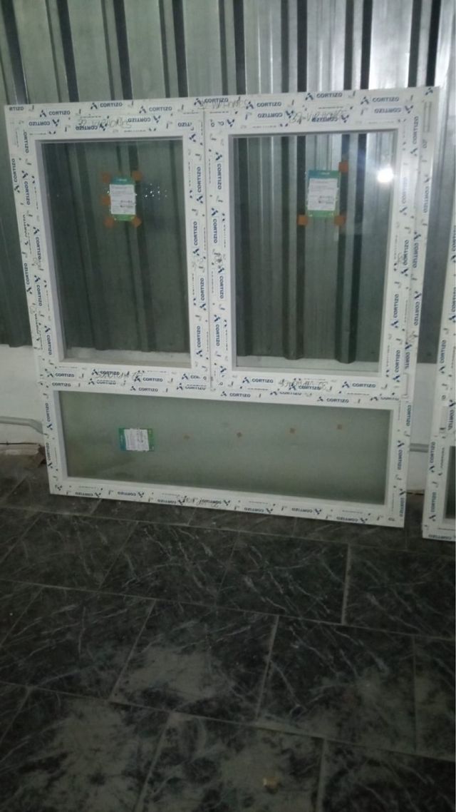 Detalles del productoVentana de PVC de la marca Cortizo. Compuesta por dos hojas abatibles y una hoja fija inferior.