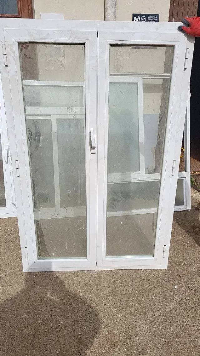Ventana de PVC con doble hoja, lista para instalar. - Marco blanco. - Doble cristal. - Tirador metálico.1'70 por 1'10