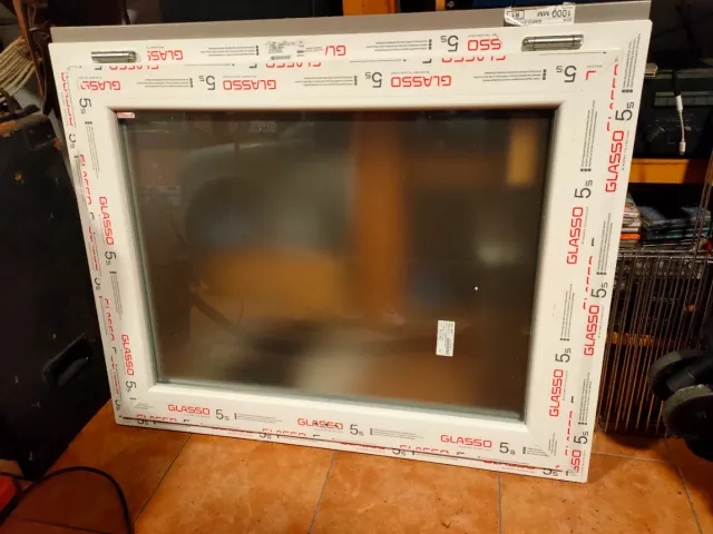 Ventana de PVC de la marca Glasso. - Medidas: 1000 mm. × 80 - Marco blanco. No es escilovatiente y le falta el asa Incluye Mosquitera!!!!