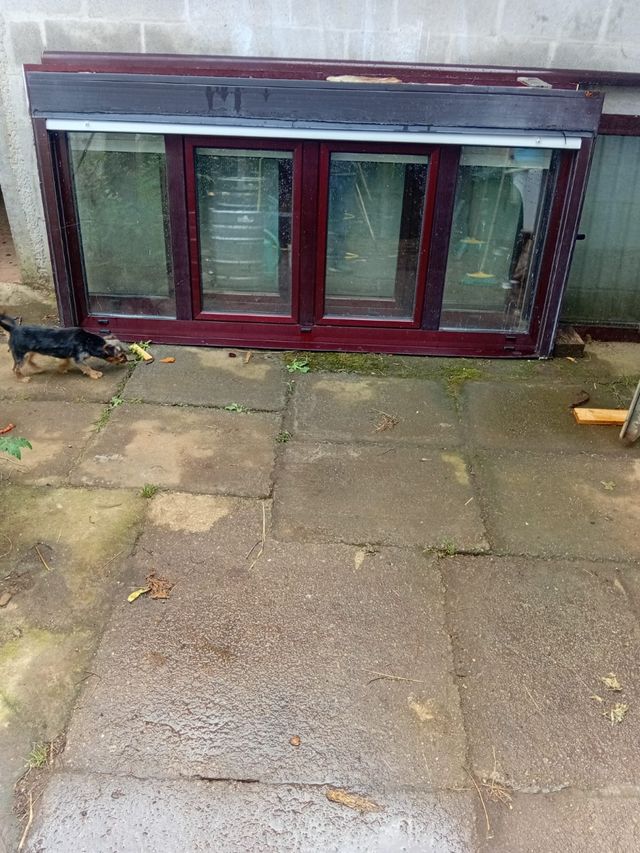 Detalles del productoConjunto de ventanas de aluminio color granate oscuro,Ideales para para una casa .