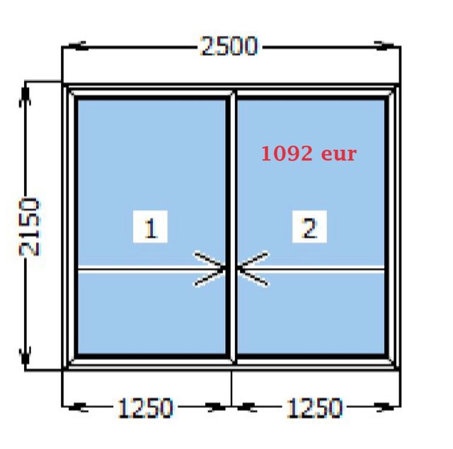 Se venden ventanas correderas de PVC hechas a medida. - Medidas totales: 2500 mm de ancho x 2150 mm de alto. - Cada hoja mide 1250 mm de ancho.