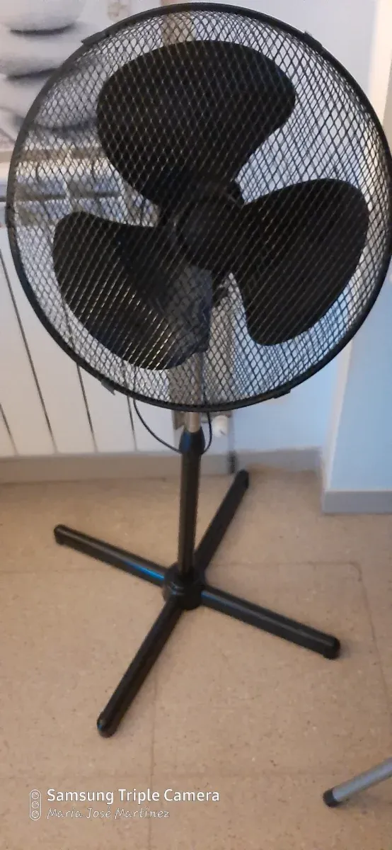 Detalles del productoVentilador de pie con base estable y rejilla protectora.