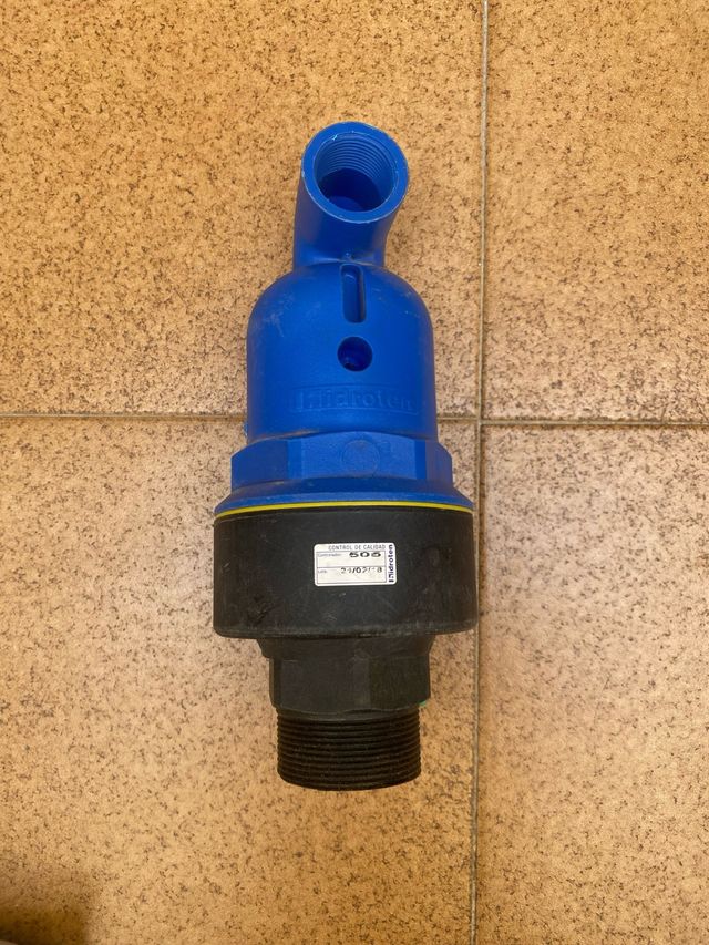 Ventosa de la marca Hidroten, modelo 505. - Color azul y negro. - Conexión roscada. - Etiqueta de control de calidad visible.