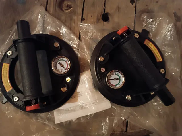 Detalles del productoSet de dos ventosas de succión para vidrio, lunas o azulejos. Cada una tiene una capacidad de hasta 250kg. Usadas una sola vez para poner una mámpara.