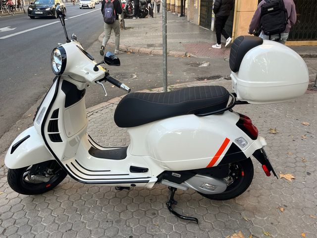 Detalles del productoMoto Vespa GTS Super 125 en color blanco.