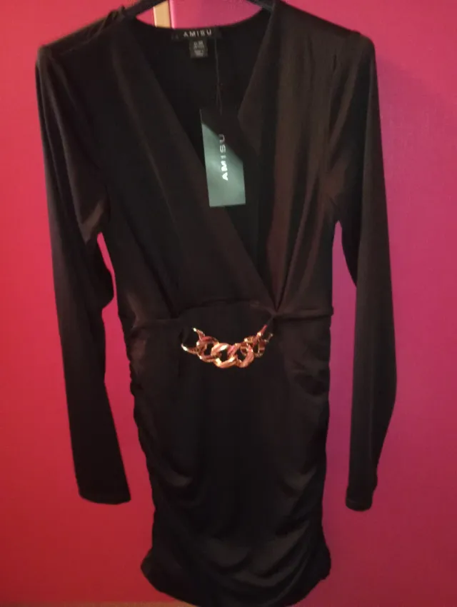 Vestido AMISU negro con cadena dorada