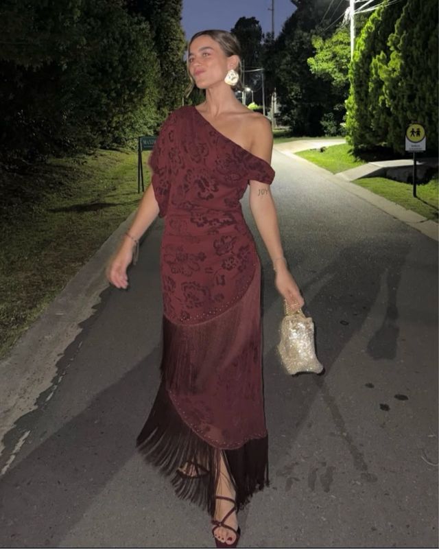 Vestido asimétrico flecos