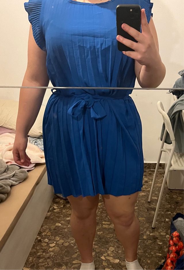Vestido azul eléctrico plisado con cinturón
