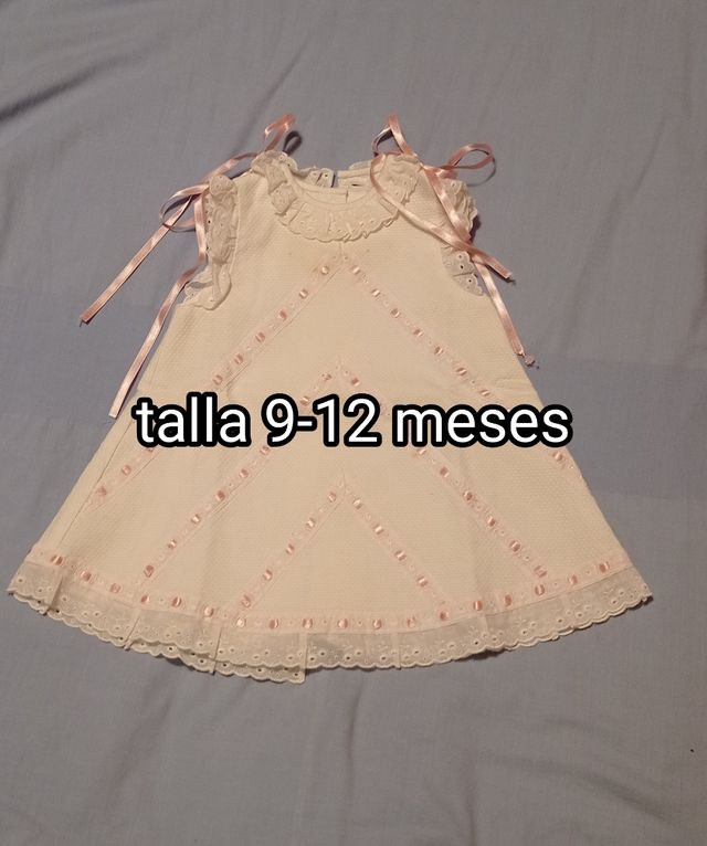 Detalles del productoVestido de bebé blanco con detalles en rosa.