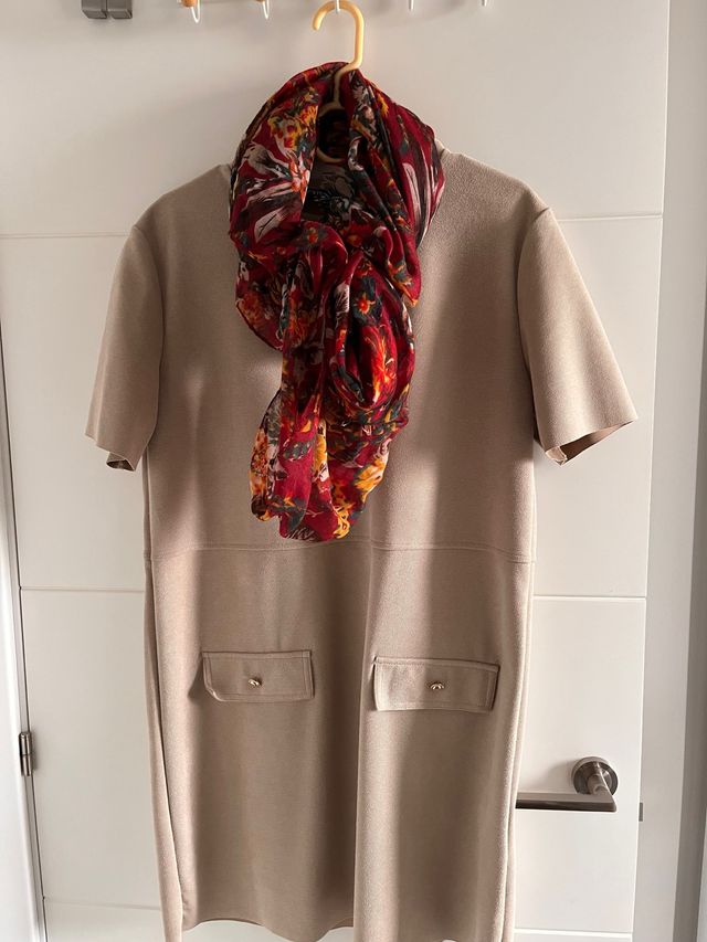 Vestido beige con pañuelo estampado