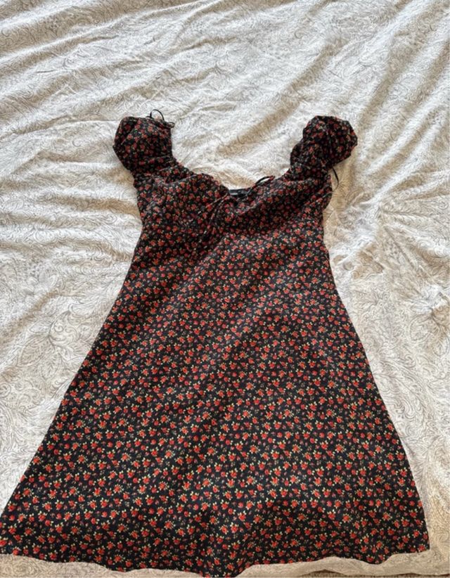 Vestido Bershka negro flores rojas