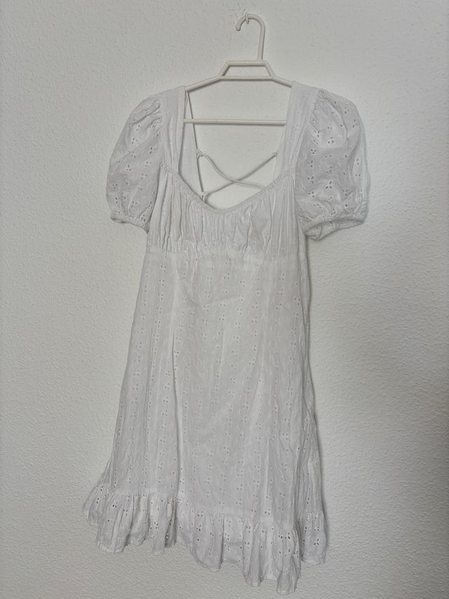 Vestido blanco calado con volantes