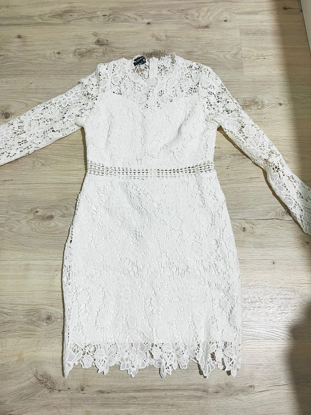 Vestido blanco de encaje manga larga