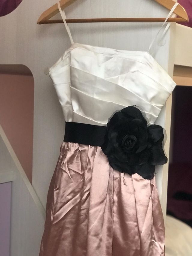 Vestido blanco y rosa con flor negra