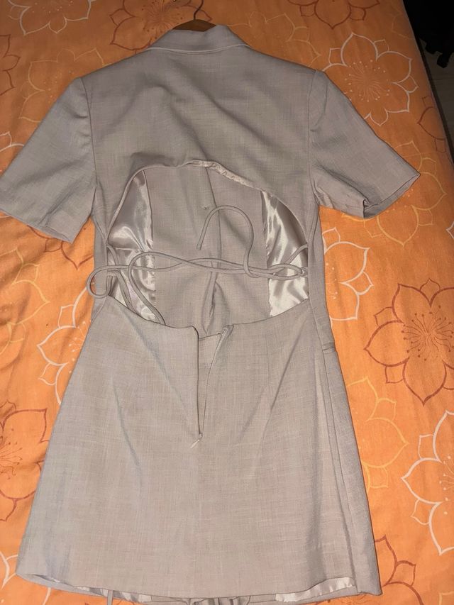 Vestido blazer beige con pantalón