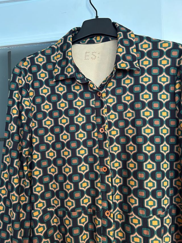 Vestido camisero marrón, verde y mostaza