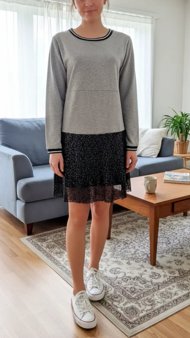 Vestido casual chic gris y negro