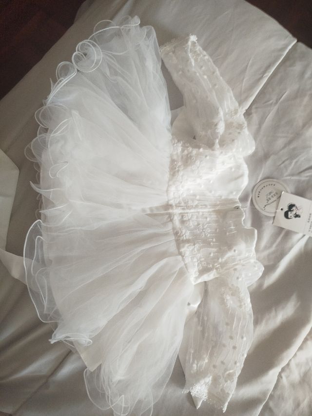 Detalles del productoPrecioso vestido de ceremonia para bebé de 3 meses, nuevo.  Es de color blanco roto y tiene un diseño delicado con bordados florales.