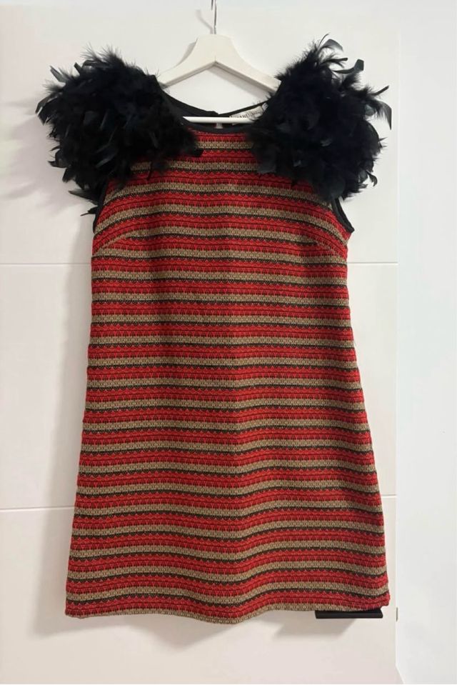 Vestido con plumas y rayas