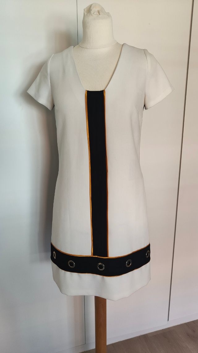 Vestido corto blanco negro estilo 60 M38