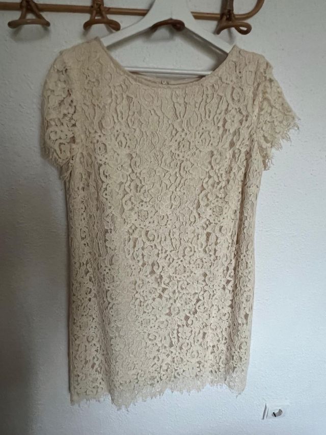 Vestido corto de encaje beige