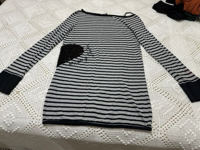 Usado pocas veces, tiene un corazon negro al lado de lentejuelas, mide de largo 79 cm.