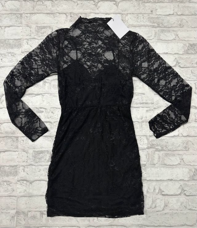 Vestido corto encaje negro